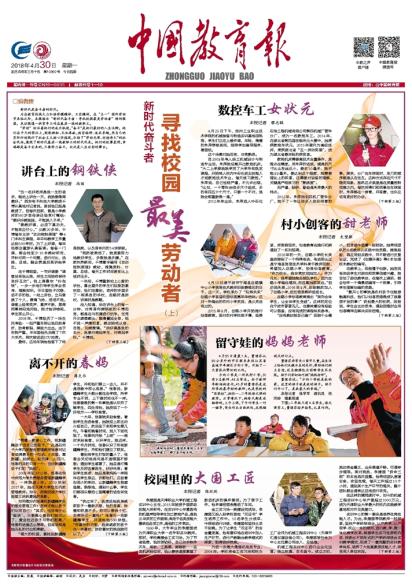 为在教育战线大力弘扬劳模精神、工匠精神,在“五一”国际劳动节来临之际,本报推出“新时代奋斗者·寻找校园最美劳动者”特别报道,采访报道一批常年工作在基层一线的教职工。